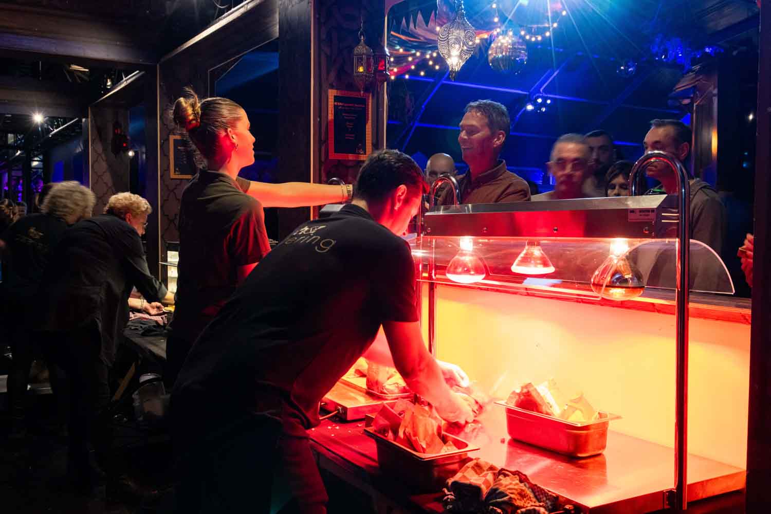 Ons team stond klaar achter de bar en in de keuken. En zorgde ervoor dat het de gasten aan niets ontbrak. Tijdens het feest werden er verse broodjes shoarma, smaakvolle pizzapunten en diverse snacks geserveerd. De geuren, variatie en presentatie zorgden ervoor dat iedereen kon genieten van iets lekkers.